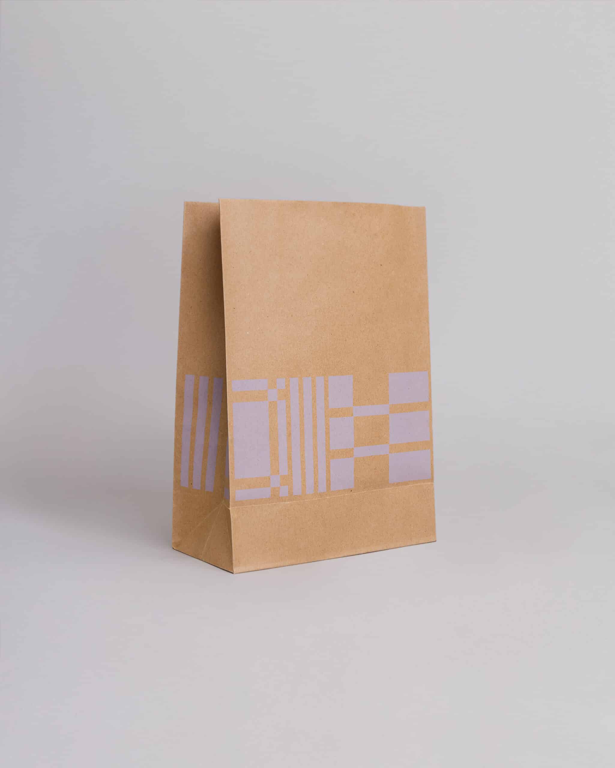 Tasapohjainen paperipussi tyylikkäällä kuviolla on monipuolinen valinta niin ravintoloiden ja kahviloiden mukaan otettavien annosten pakkaamiseen kuin myös ruokakauppoihin.
